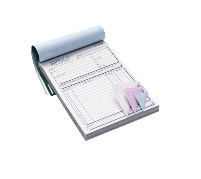 Nos carnets à souche personnalisés sont constitués de liasses de feuilles autocopiantes détachables. Ce support est généralement utilisé en tant que facturette par de nombreux corps de métier.